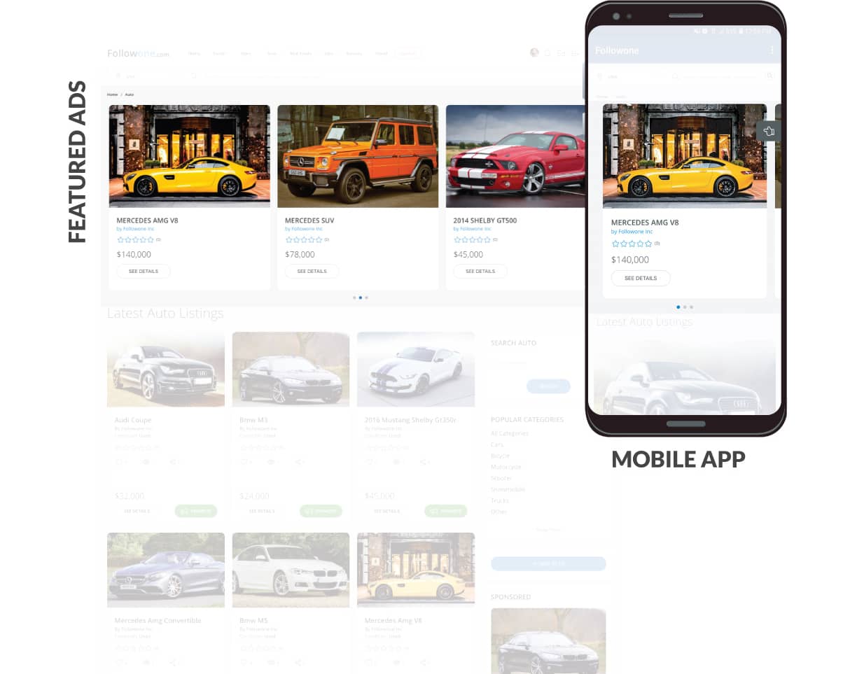 Featured ads allow customers to get visibility above the fold on each category page, including main categories such as: Store, Auto, Real Estate, Travel, Jobs, Services.